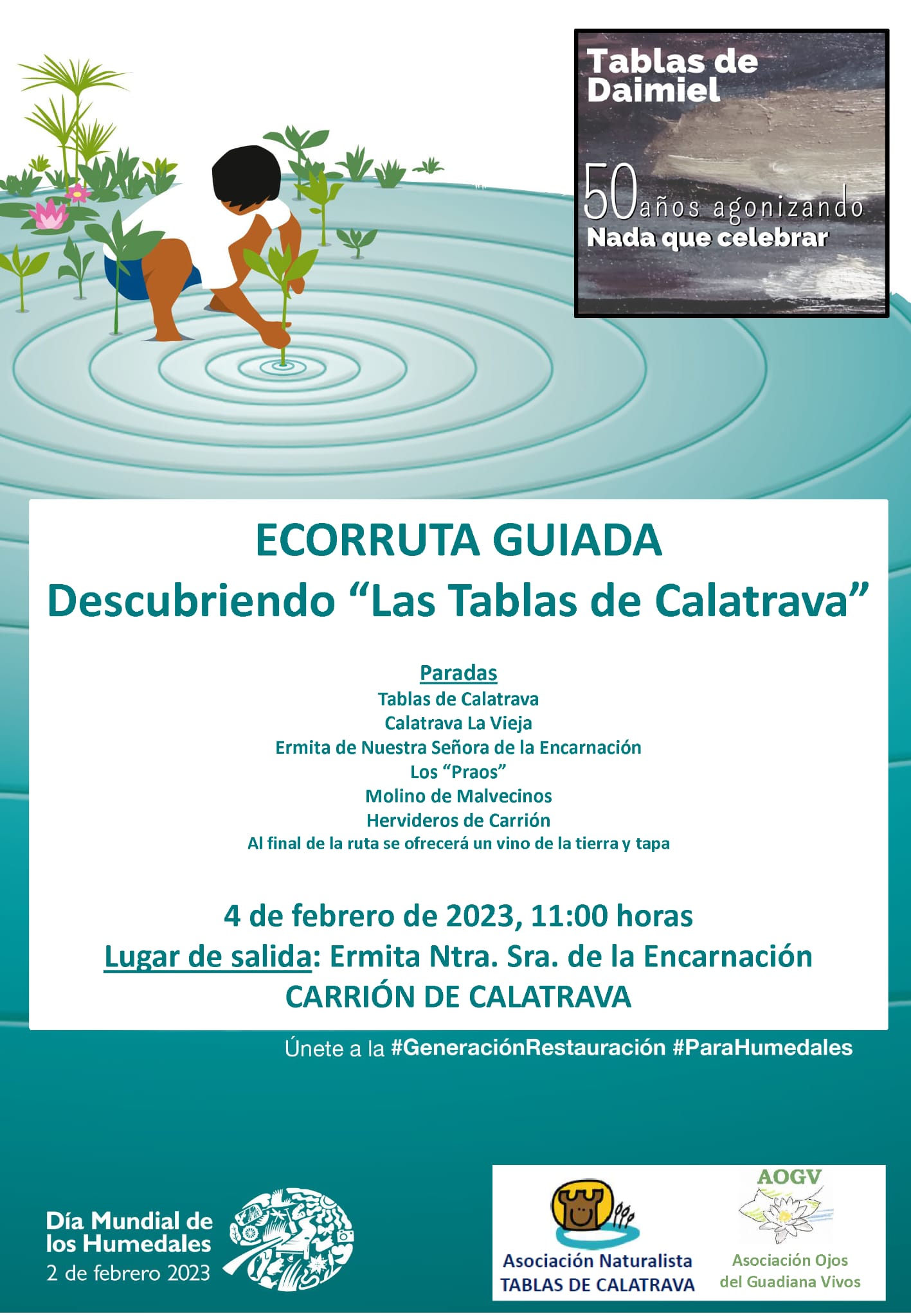 restaurado de Malvecinos, por la limpiada Cañada Real de la Plata y convite de migas en el Hervidero), poniendo estos lugares en
